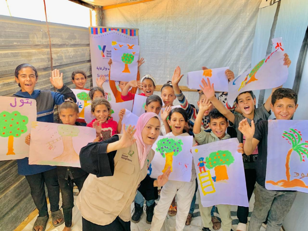 And yet, every day, Nedaa chooses to show up. She walks through rubble-lined streets to reach displaced children, many carrying the same grief and uncertainty she feels. In overcrowded shelters, she leads PSS sessions where children draw, paint, and play together.Good Neighbors is a global NGO dedicated to improving the lives of children and communities in over 50 countries.