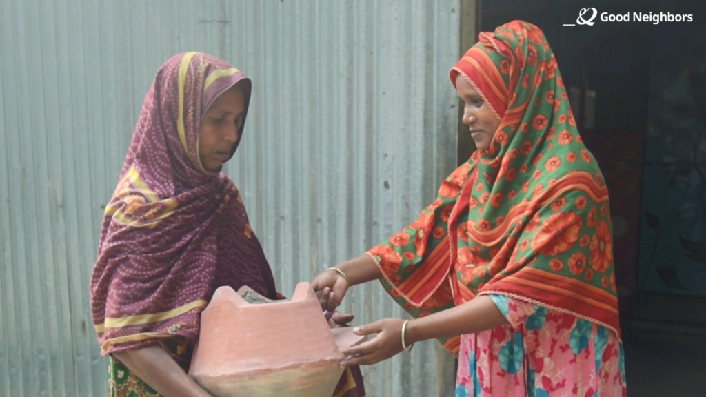 That began to change when Maheda joined the Community Resilience Against Disaster (CRAD) Project, led by Good Neighbors Bangladesh with support from the Good Neighbors Global Partnership Center. The project helps families, especially women, prepare for disasters and build sustainable livelihoods in flood-prone areas.